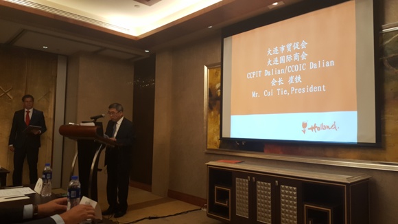 崔铁会长在致辞中指出,近年来大连与荷兰间经贸往来日益密切,在双方的共同努力下,经济贸易、教育、文化、艺术等诸多方面取得了广泛成果。今天企业对接说明会的举办也将推动双方在科技、环保领域的交流与合作,助推大连城市发展创新转型、结构调整。大连市贸促会、大连国际商会也将结合企业需求,加强两地经贸团组的互访,为双方企业间的商界对话、项目对接搭建平台。